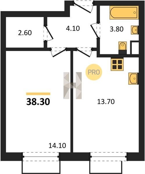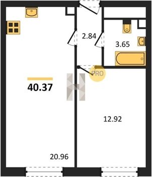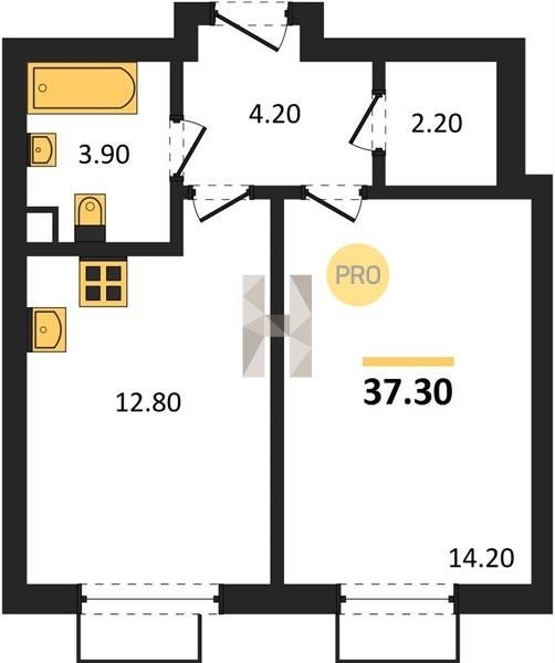 Площадь от 37.3 м2