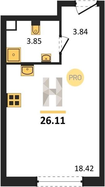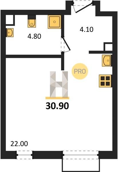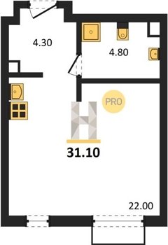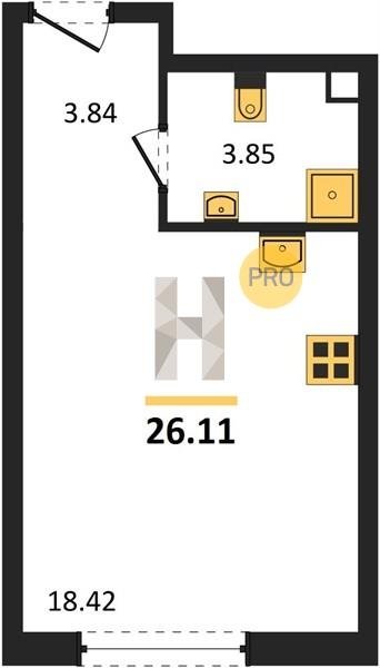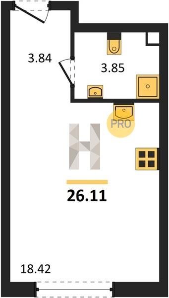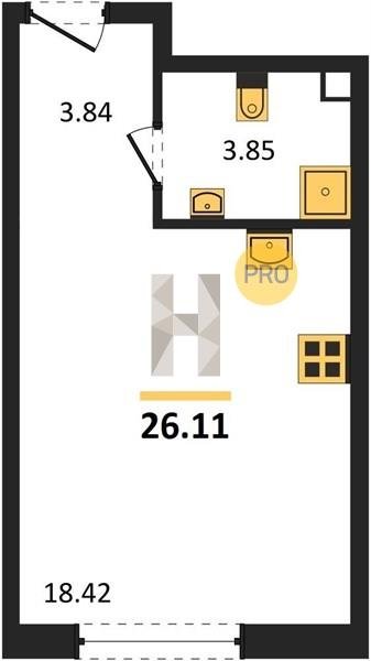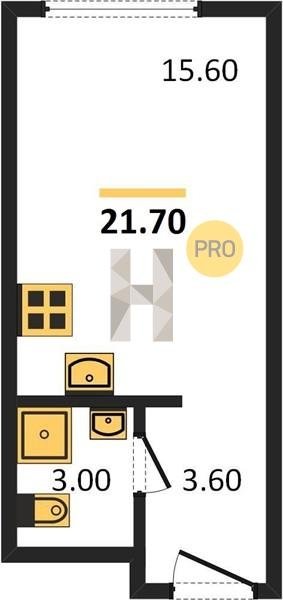Площадь от 21.5 м2