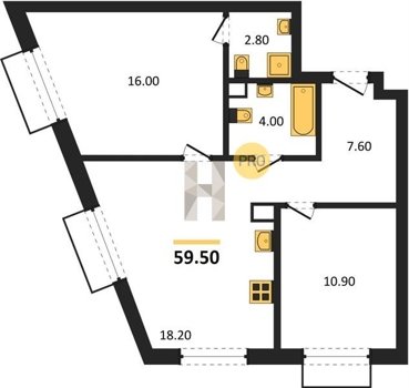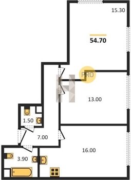 Площадь от 54.7 м2