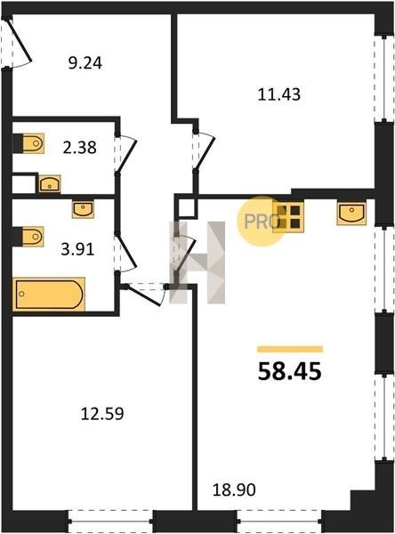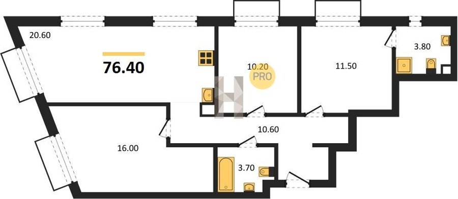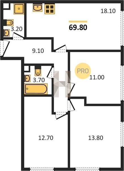 Площадь от 67.3 м2