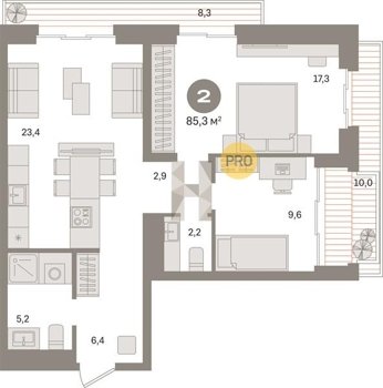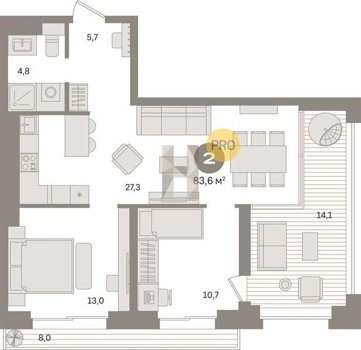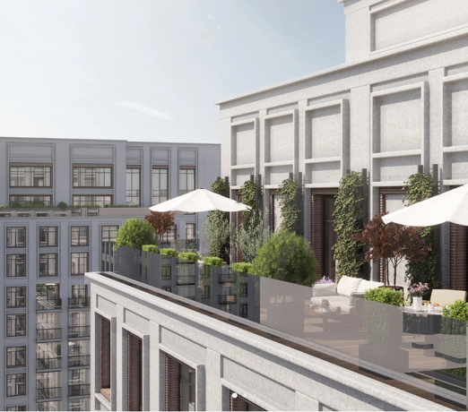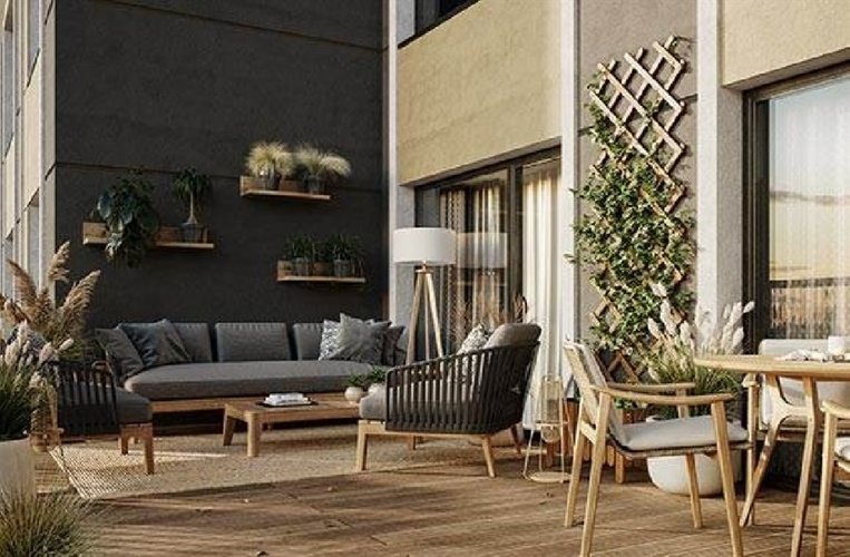 У квартир на первых и последних этажей спроектированы террасы. Это большие открытые пространства с террасной доской и безопасным ограждением по периметру. Некоторые дополнительно оборудованы летней кухней. Они служат альтернативой загородному участку.