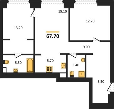 Площадь от 61.4 м2