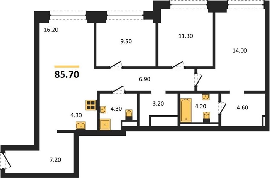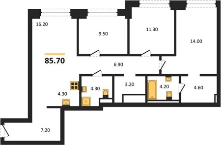 Площадь от 85.7 м2