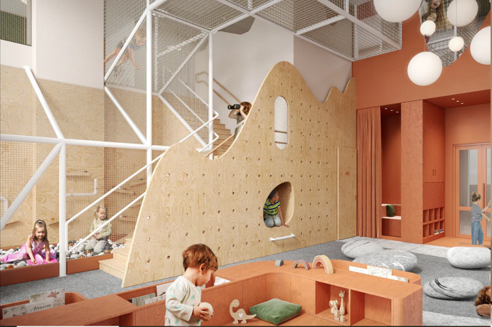 Детская игровая комната, главная точка притяжения для маленьких жителей Апсайд Тауэрс. Мы разработали ее вместе с психологами и педагогами, чтобы получилось место, где дети смогут развиваться, играть и учиться, где им будет уютно, интересно и безопасно.