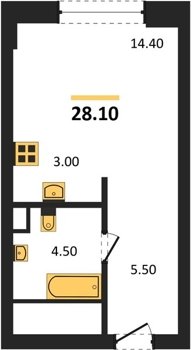 Площадь от 25.6 м2