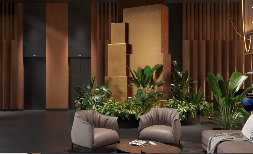 На первых этажах резидентов и гостей встречают лобби с авторским дизайном от Sundukovy Sisters. Это редкая возможность: оказаться в пространстве, спроектированном бюро, которое знаменито своими работами для премиальных отелей и ресторанов по всей планете.