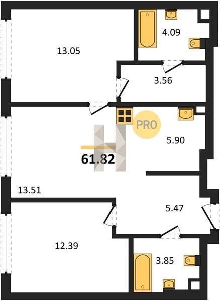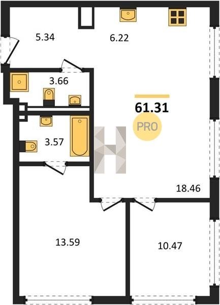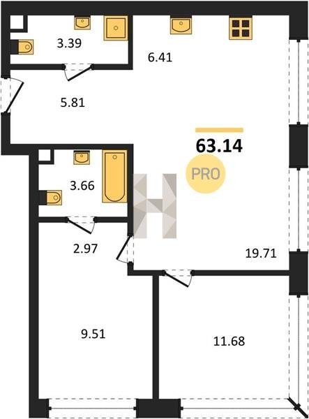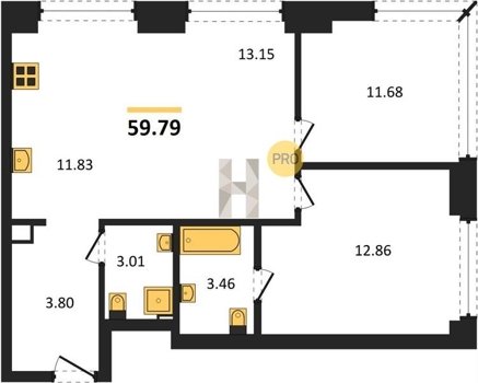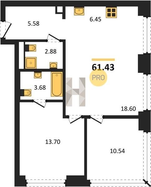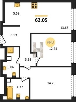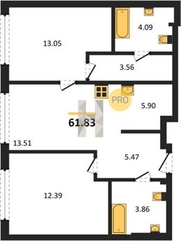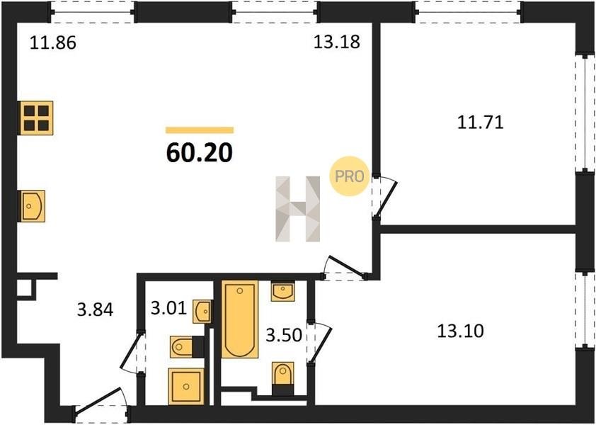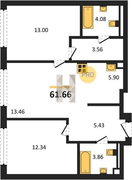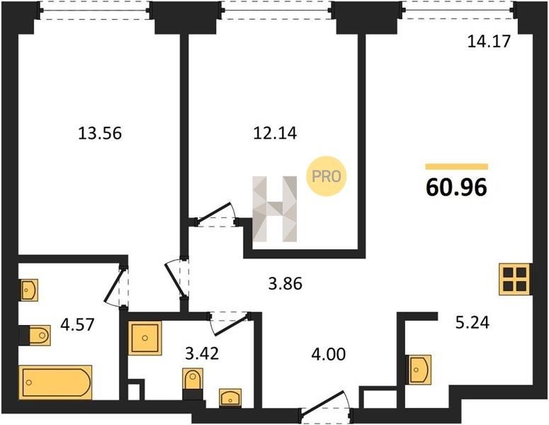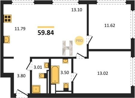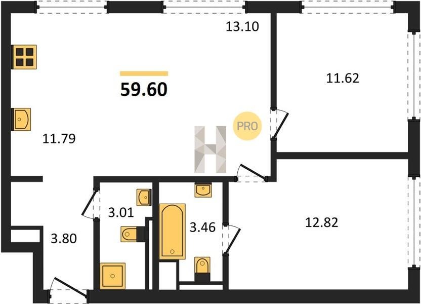 Площадь от 59.6 м2