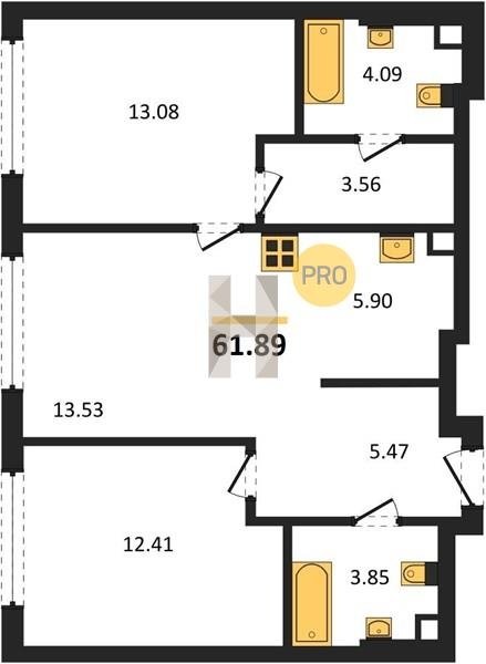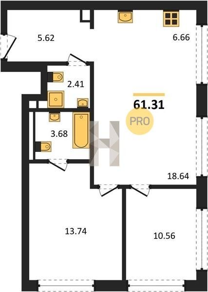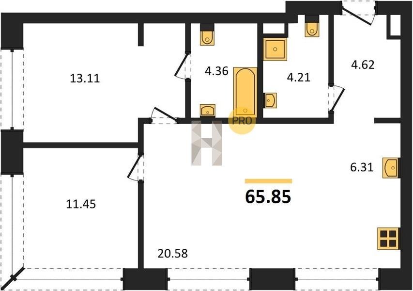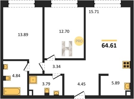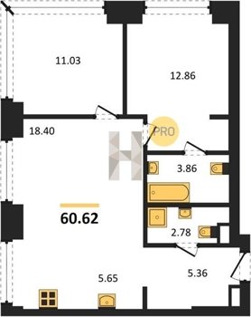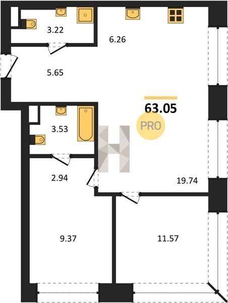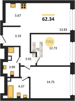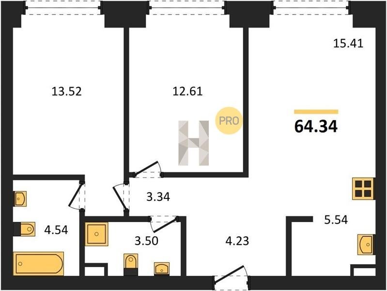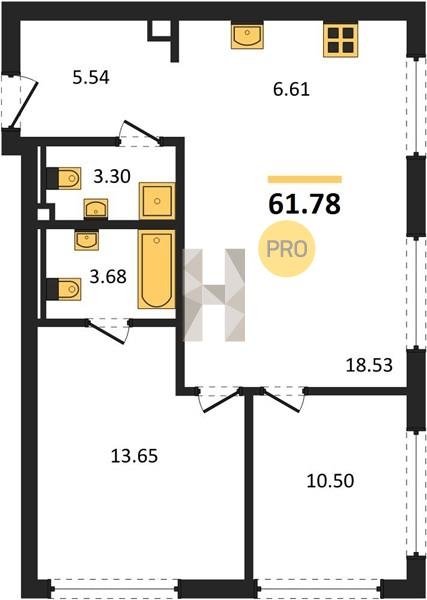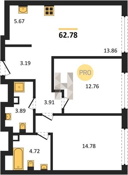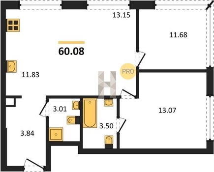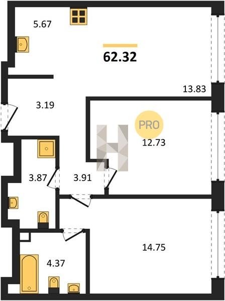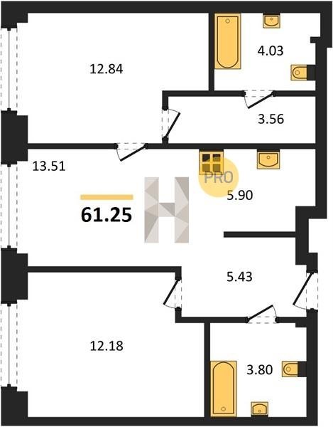 Площадь от 59.6 м2