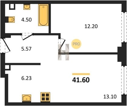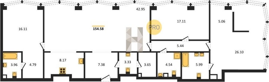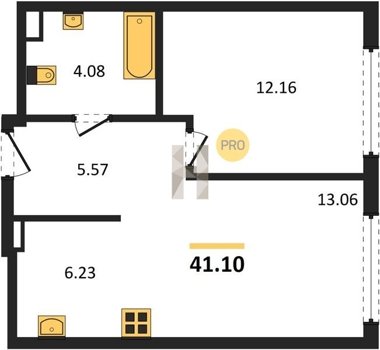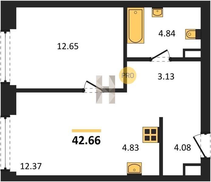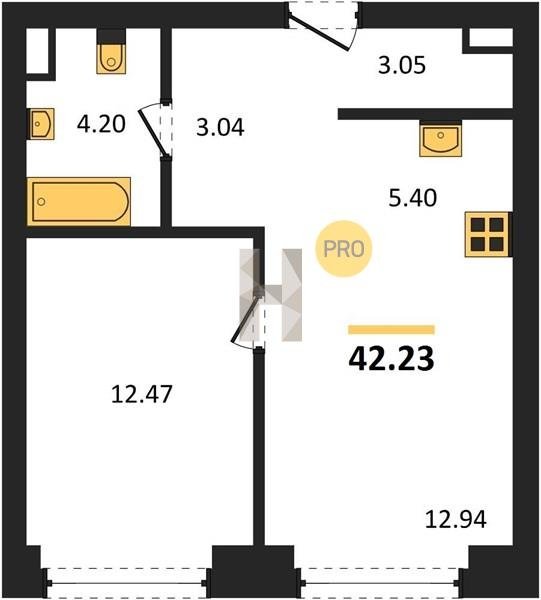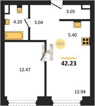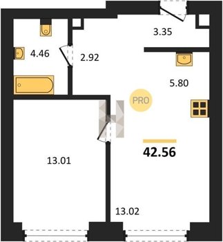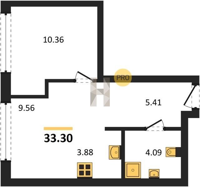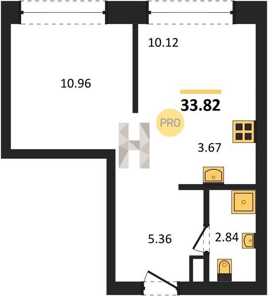 Площадь от 33.3 м2