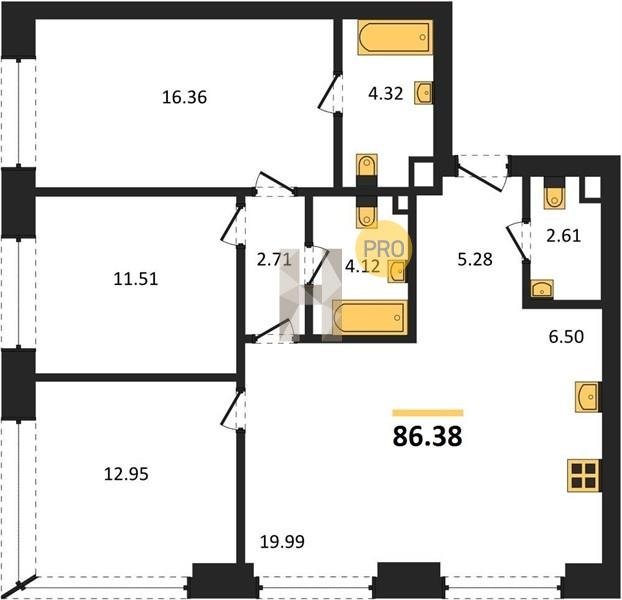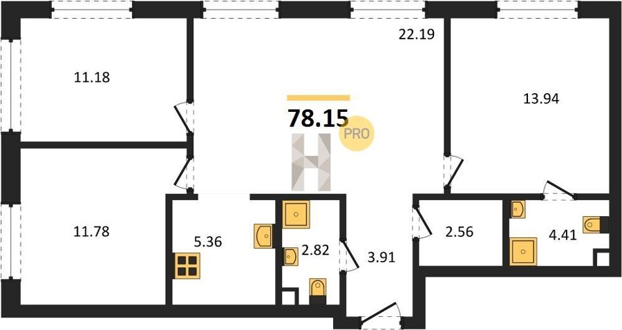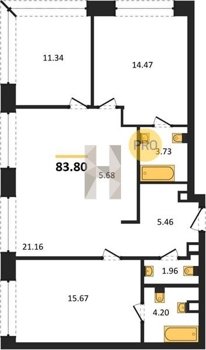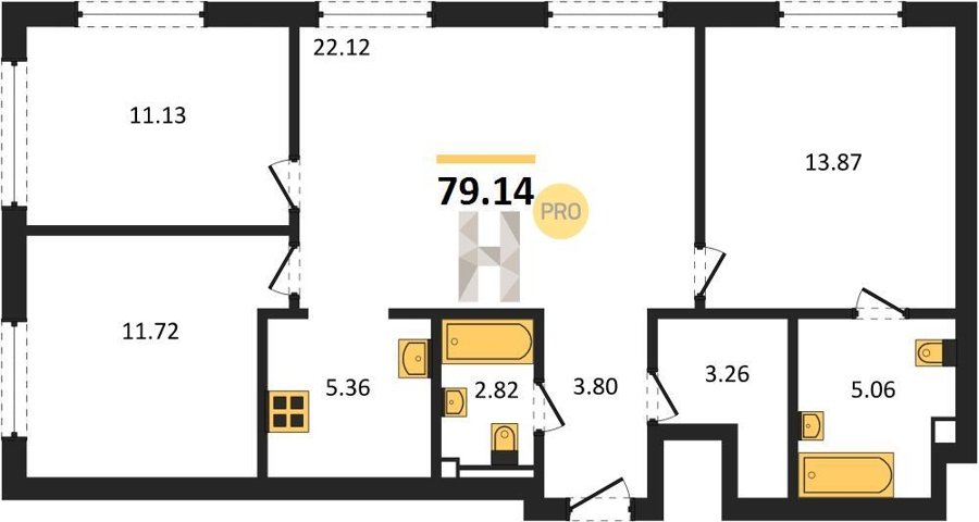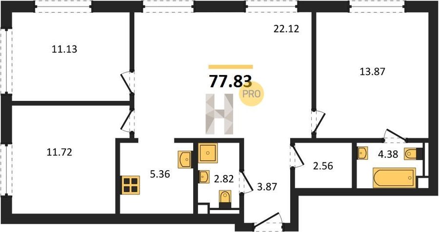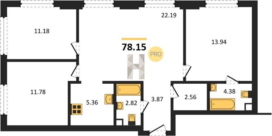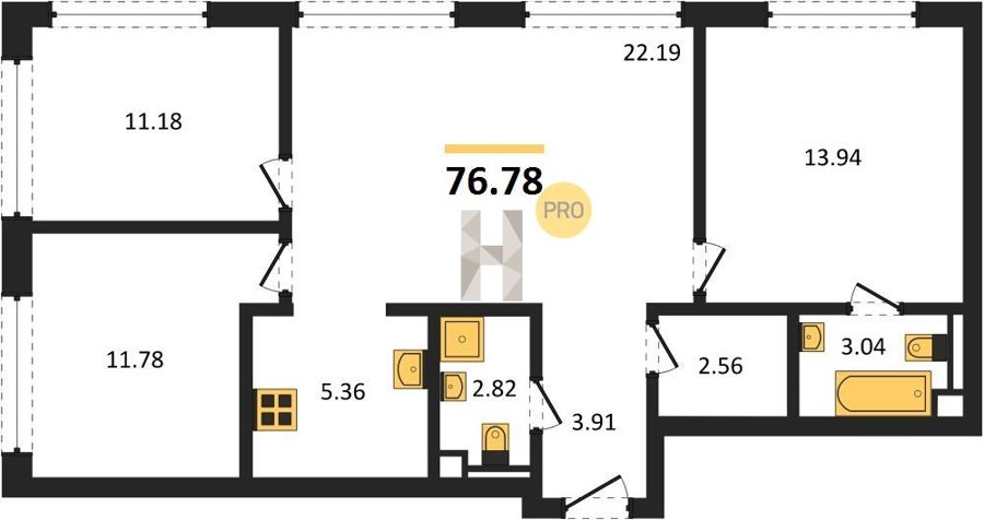 Площадь от 76.78 м2