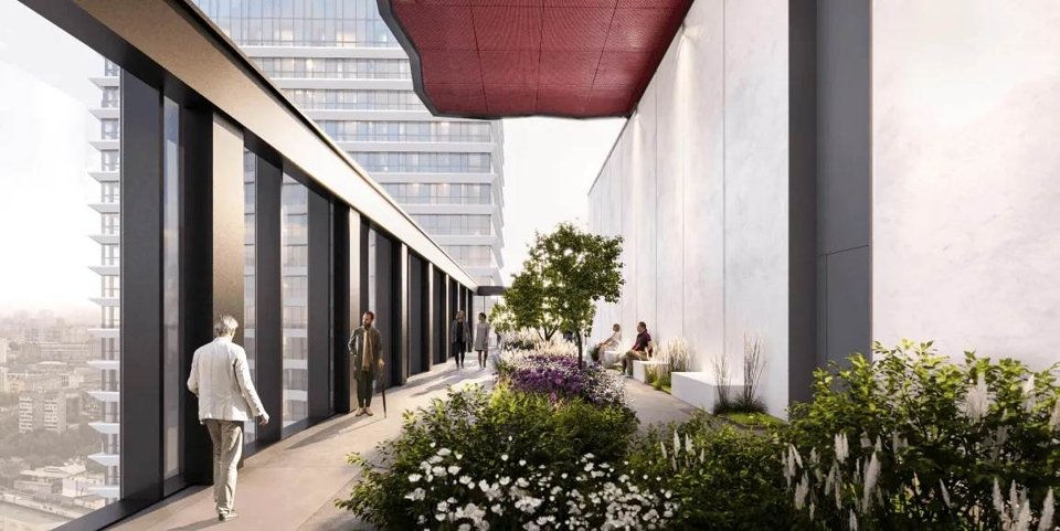 нутреннее благоустройство ТАТЕ и арт-инфраструктура комплекса вместе синтезируют пространство прямого взаимодействия человека и культуры. Вход во все три здания проходит через стилобат — общий цокольный этаж. Панорамный лаунж на высоте 140 метров позволяет осязать себя в масштабах всего города. Из больших окон открываются впечатляющие виды на Москву. Отличное место для уединения, общения с близкими и друзьями, размышлений и продуктивной работы.