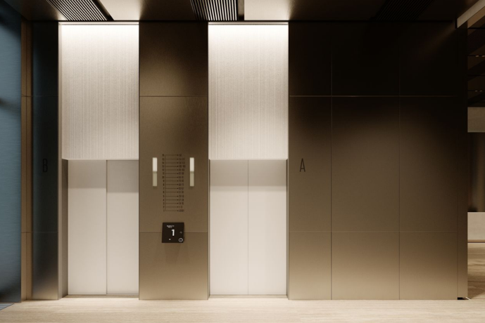 В каждой секции жильцов доставляют к месту назначения два скоростных лифта Митсубиши. Ни один не заставит себя ждать дольше 40 секунд. Более того, лифты буквально запрограммированы под каждого резидента. Это означает, что благодаря считыванию информации с вашего электронного ключа, лифт доставит вас на ваш жилой этаж, а также на 1-й и подземный этажи. На случай несрабатывания системы, функция дублируется меткой или кнопкой связи с охраной.